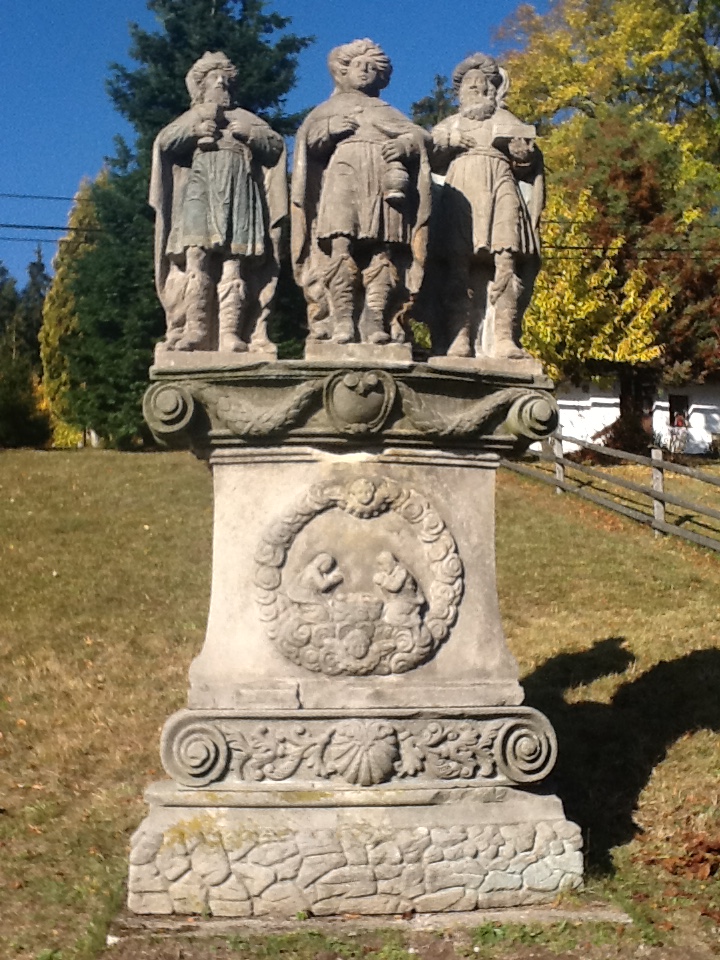 „Z vyprávění potomků původních majitelů domu, kteří nás osobně navštívili v roce 2014, vyplývá, že příběh rodiny končí na Drajborně v poválečném období. Potvrdili také původní název sousoší – Tři králové. Bohužel neexistuje žádný odborný písemný záznam o pomníku, pouze několik kuriózních a zajisté zcela „pravdivých“ historek. „Pobavila mě historka o opilém zaměstnanci JZD, který v místě pomníku havaroval, způsobil jeho pád a destrukci soch,“ připomíná jednu z nich nynější majitel domu.
